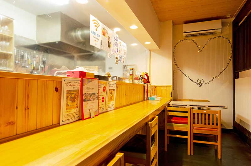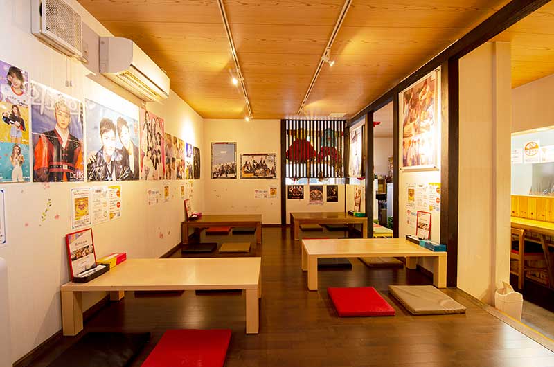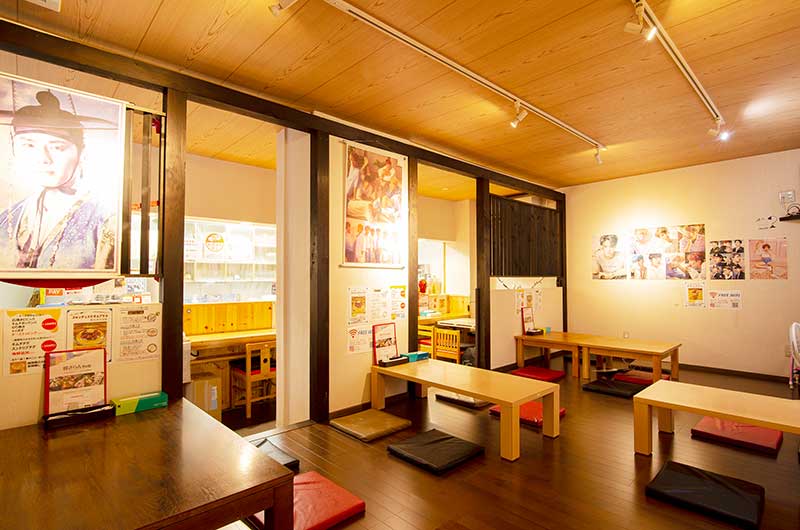 店内は30席。お一人様もOKのカウンター、テーブル席、広々とした小上がり席をご用意しています。小さなお子様連れにも好評です!夜は一人飲みも可能。食事だけに限らず、宴会から昼のママ会など幅広くご利用いただけます。また、店内には韓国の食品コーナーもあり、販売もしております。ぜひご利用ください。